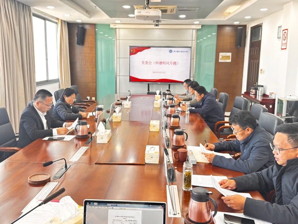 12月3日上午,我院在行政楼10楼会议室召开2025年师德师风专题会议。学院党委委员参加会议。会议由党委书记赵允玉主持。